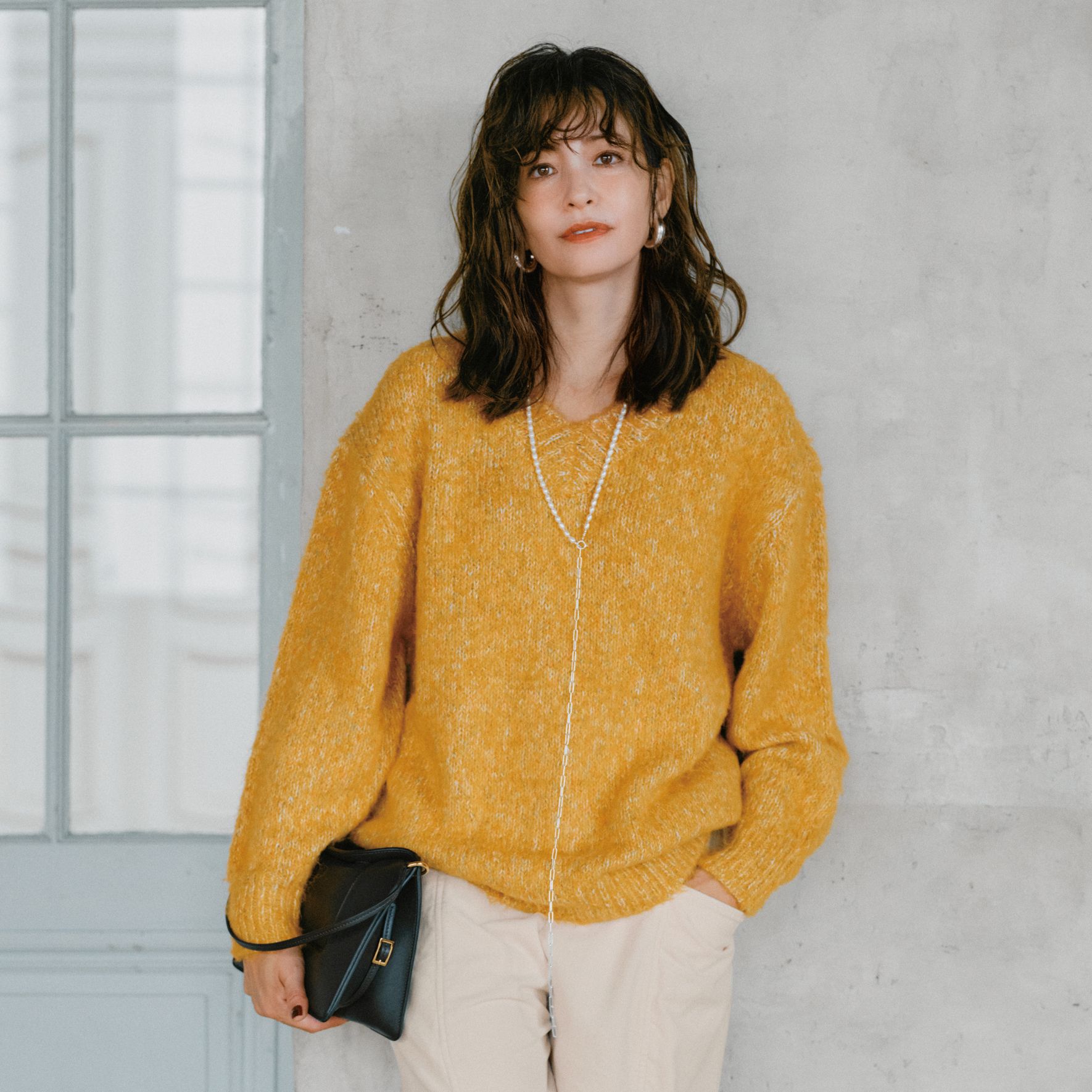 4種類の糸を贅沢にミックスしたニットは見た目より軽やかで、ふわふわっとした起毛感でウールを使ってないのに真冬もぬくぬく。しかもVネックの抜け感で女らしさまで叶うから、主役ニットの仲間入り必至です。【suadeo(スアデオ)】HAPPY PLUS STORE発の「suadeo」。感度のいい」」上質カジュアル「を愛する皆様のために、おしゃれの幅を広げる「今着てほしいアイテム」を心地よい素材にこだわって作りました。