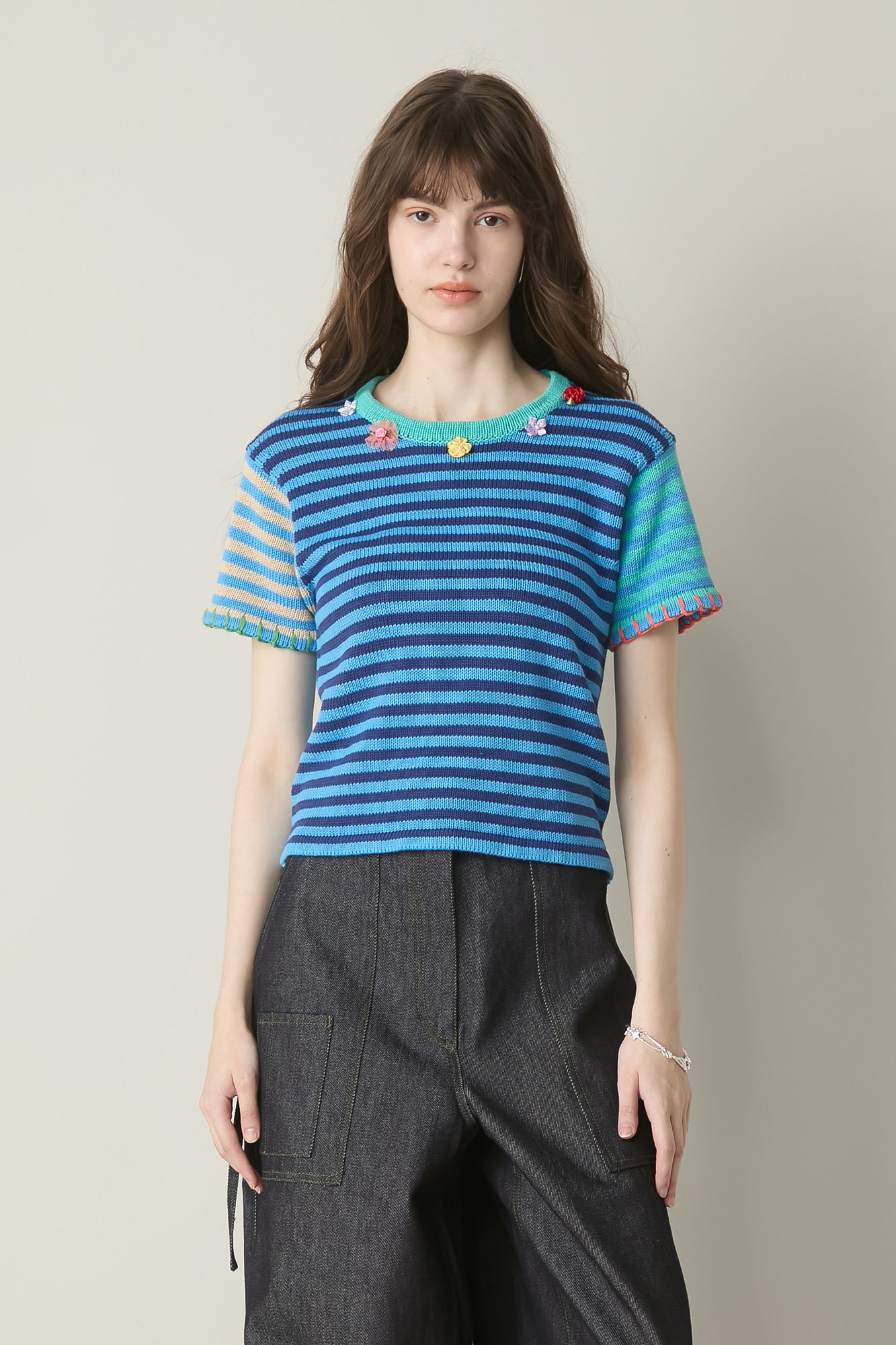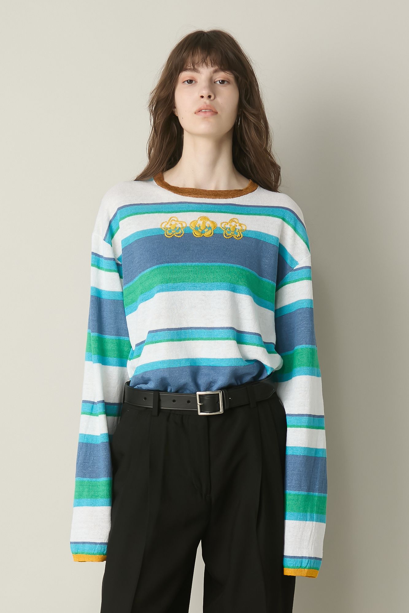 これ一枚で鮮度が高まる、マルチボーダーニット。抜けの生まれるオーバーシルエットに鮮やかなフラワー刺繍をあしらい、目線も自然とアップ。さらりとしたリネン100%の特有の肌あたりに、優しさも備えた心地よさが自慢です。