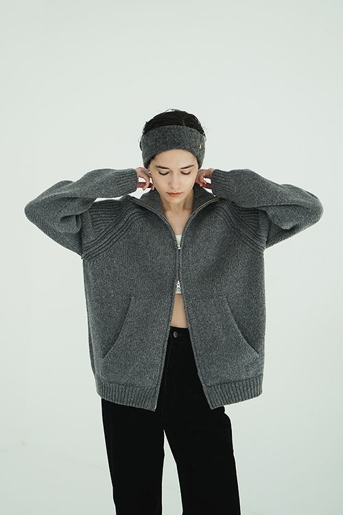 ニット特有の存在感がありながらも、体馴染みがよく、軽くて暖かい一枚です。丸みのあるオーバーシルエットで抜け感を出し、華奢に見えるようショルダー部分にリブ編みデザインを施しました。逆開ファスナー仕様なので、スタイリングに抜け感をプラスしたりシルエットの変化を楽しめます。羽織からトップスまで様々な着方が可能な、スタイリングの幅が広がるアイテムです。---------------------------裏地:なし透け感:なしストレッチ:あり---------------------------※光の当たり具合や端末等の閲覧環境によって、実際の色味と異なって見える場合がございます。予めご了承ください。※表記サイズは商品の実寸で、布製品の特性上、表記サイズと多少の誤差が生じる場合がございます。※画像の商品はサンプルの為、実際の商品と色味、仕様、加工、サイズ、素材等が若干異なる場合がございます。