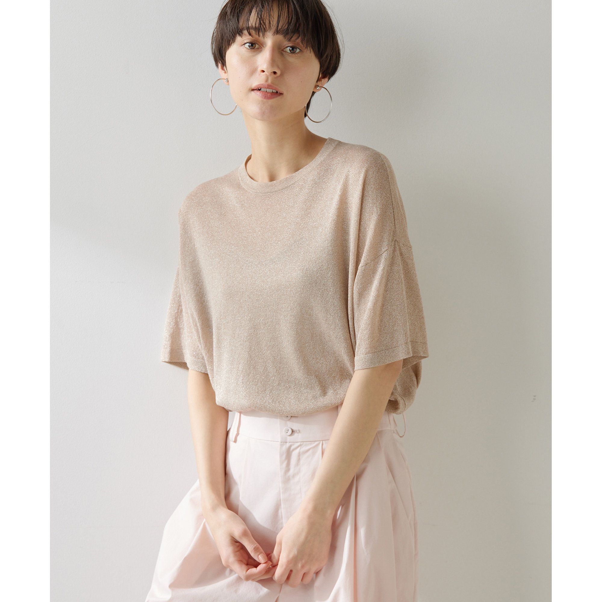 【2025SS】繊細なラメの表情が上品な、大人のラメニットTEE■ランク感のある上品なラメの表情がポイントの半袖ニットTシャツ。■レーヨン混ならではの柔らかく落ち感のある風合いが大人のムードを演出。■ボディラインを拾いにくく、一枚でこなれて見えるオーバーシルエットがポイント。■シンプルながらも一枚で映え、程よいシアー感がトレンド感と涼やかさをプラス。■合わせるボトムシルエットを選ばず、どんなアイテムにも合わせやすい汎用性抜群のアイテム。【COLOR】シルバー:明るいトーンが爽やかなシルバー。ピンクベージュ:女性らしい柔らかなピンクベージュ。ダークブラウン:シックで上品なダークブラウン。【MATERIAL】チクチクしないラメフィルムを抗ピルレーヨンで撚糸した、レーヨンの柔らかさとドレープ性による美しいシルエットが特徴のラメニット。----------------------------------------------------洗濯方法:手洗い可透け感:あり裏地:なし伸縮性:あり光沢感:あり----------------------------------------------------【注意事項】・画像の商品はサンプルです。実際の商品と仕様、加工が若干異なる場合があります。また 、パソコンやスマートフォンのモニター環境などにより、色味が違って見える場合がございます。・店頭及び屋外での撮影画像は、光の当たり具合で色味が違って見える場合があります。商品の色味は、スタジオ撮影の画像をご参照ください。・入荷状況により、お届け予定が前後する場合があります。・お客様への発送が店頭販売より遅れる場合があります。・追加生産商品は、一部の店舗、通販で販売中の場合があります。予めご了承下さい。