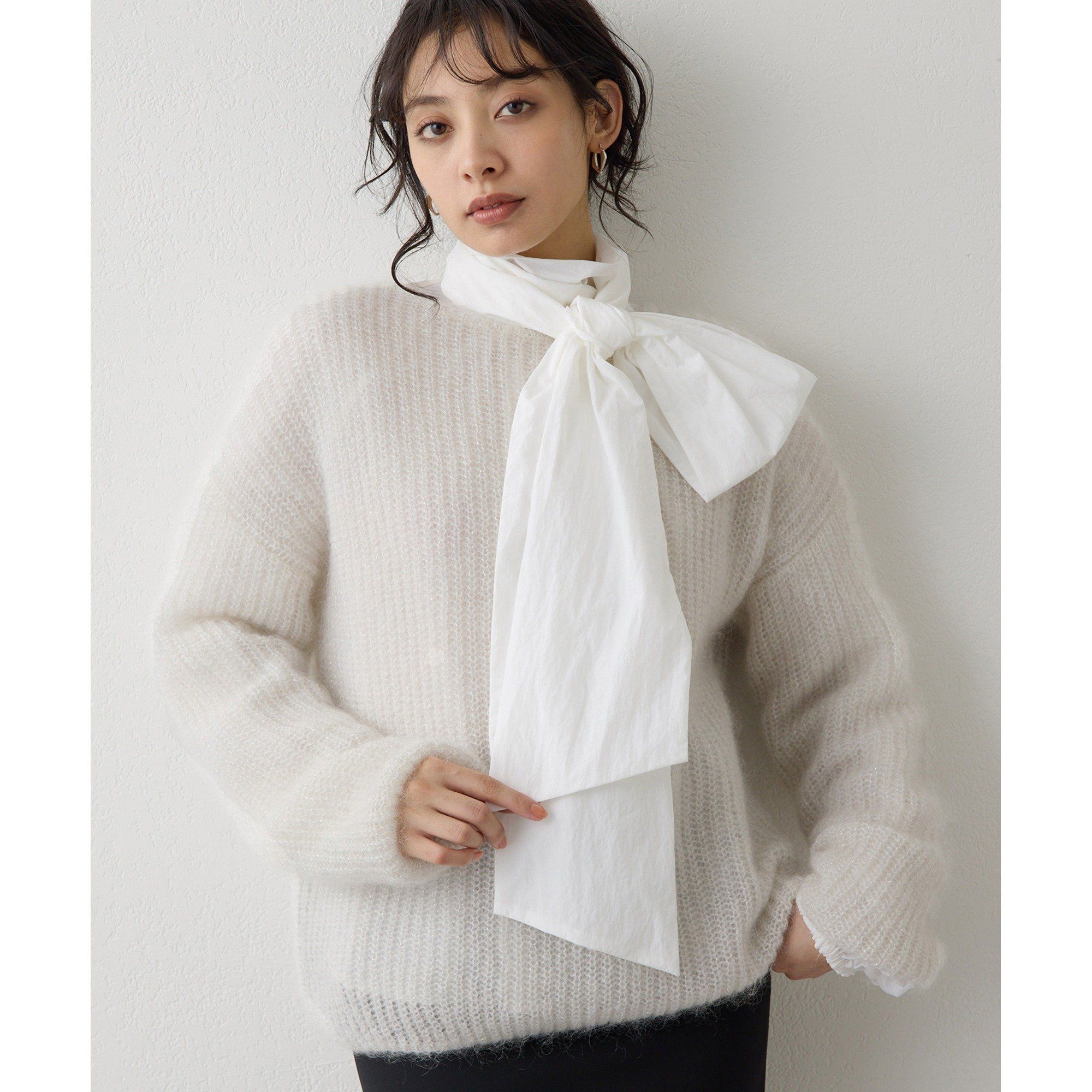 【2025AW】さりげなく華やかさを効かせたラメニットプルオーバー■モヘヤにラメ糸を編み込んだローゲージニットプルオーバー。■シンプルながらもデザイン感のある、一枚で様になるアイテム。■やや横に開いたネックラインが首のラインをきれいに見せ、女性らしさを演出。■優しく身体を包み込むゆったりとしたサイジングは、シャツやブラウスとのレイヤードスタイルにも◎。■華やかなラメの輝きが上品なアクセントとなり、特別な日のコーディネートにもおすすめの一着。【COLOR】オフホワイト:程よい甘さを演出するオフホワイト。ピンクベージュ:女性らしさを引き立てるピンクベージュ。【MATERIAL】細く柔らかで滑らかな手触りとモヘヤの強さを併せもち、上品な光沢と軽さ、保温性と通気性にも優れた高級キッドモヘヤ混素材。〈お取り扱い上のご注意〉※本品には毛足のある素材を使用しております。ご使用中に加わる摩擦や磨耗によって多少の毛抜けや毛乱れが生じることがあります。素材の特性上、完全に防ぐことができませんのでご了承ください。※毛が他の物に付着する事がありますのでご注意ください。※濃い色は毛の付着が目立ちますので淡い色との組み合わせはお控えください。----------------------------------------------------洗濯方法:ドライクリーニング透け感:あり裏地:なし伸縮性:あり光沢感:あり(ラメ糸)----------------------------------------------------【注意事項】・画像の商品はサンプルです。実際の商品と仕様、加工が若干異なる場合があります。また 、パソコンやスマートフォンのモニター環境などにより、色味が違って見える場合がございます。・店頭及び屋外での撮影画像は、光の当たり具合で色味が違って見える場合があります。商品の色味は、スタジオ撮影の画像をご参照ください。・入荷状況により、お届け予定が前後する場合があります。・お客様への発送が店頭販売より遅れる場合があります。・追加生産商品は、一部の店舗、通販で販売中の場合があります。予めご了承下さい。