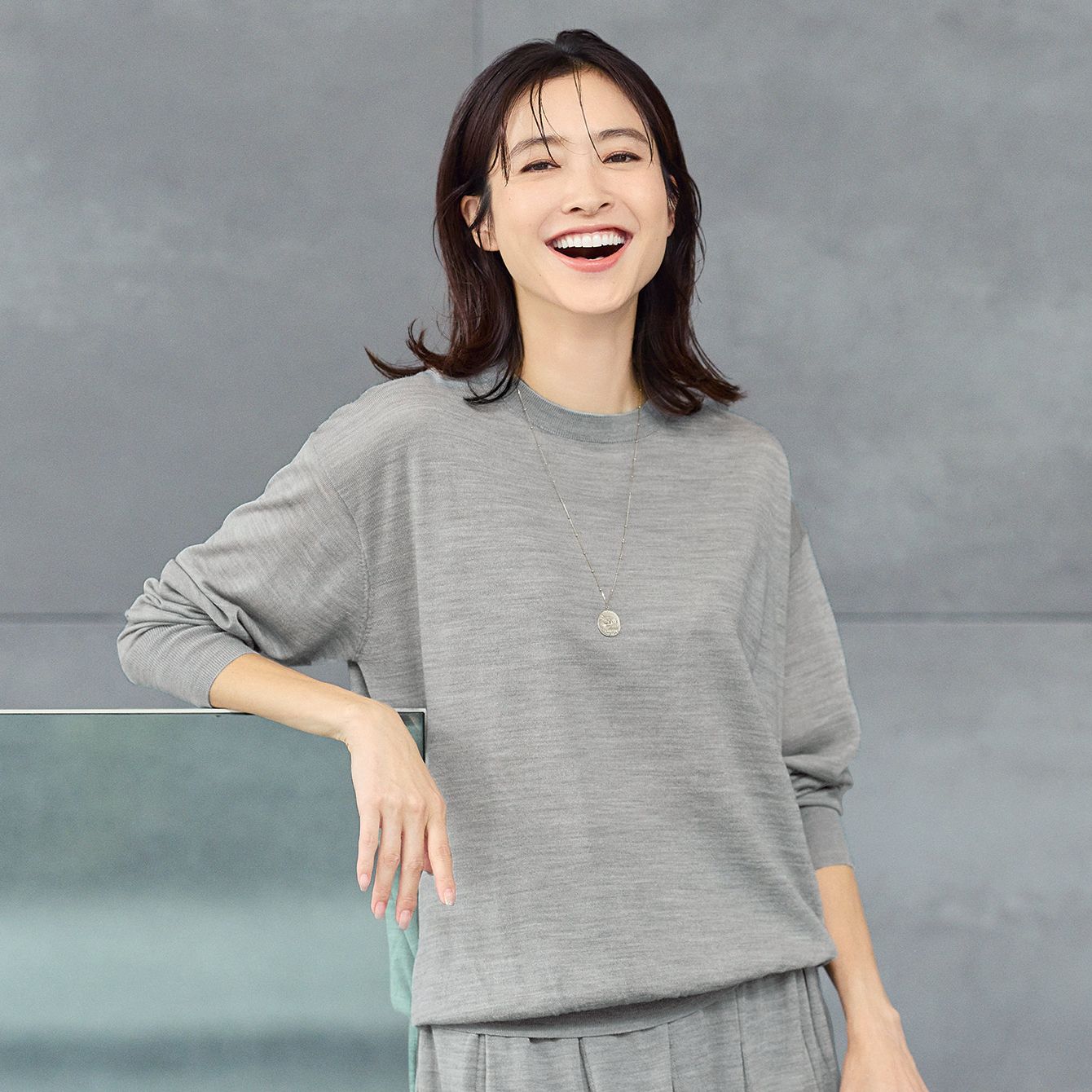 ドライタッチのウールポリエステル素材で、さらりとした肌ざわりが心地いい。ベーシックなデザインでありながら、上品な透け感が女らしい抜け感を添えてくれる。きれいめだから通勤ワードローブとしても活躍。しなやかな薄手のニット素材で、ほんのり透け感があり軽やかな雰囲気。さらりとした着心地で、スウェットのような感覚で気軽に着られるのでオンオフ問わず活躍するはず。すそのリブがほどよくキュッと締まっているので、自然にきれいなブラウジングが決まるのもうれしい。M7daysってどんなブランド?