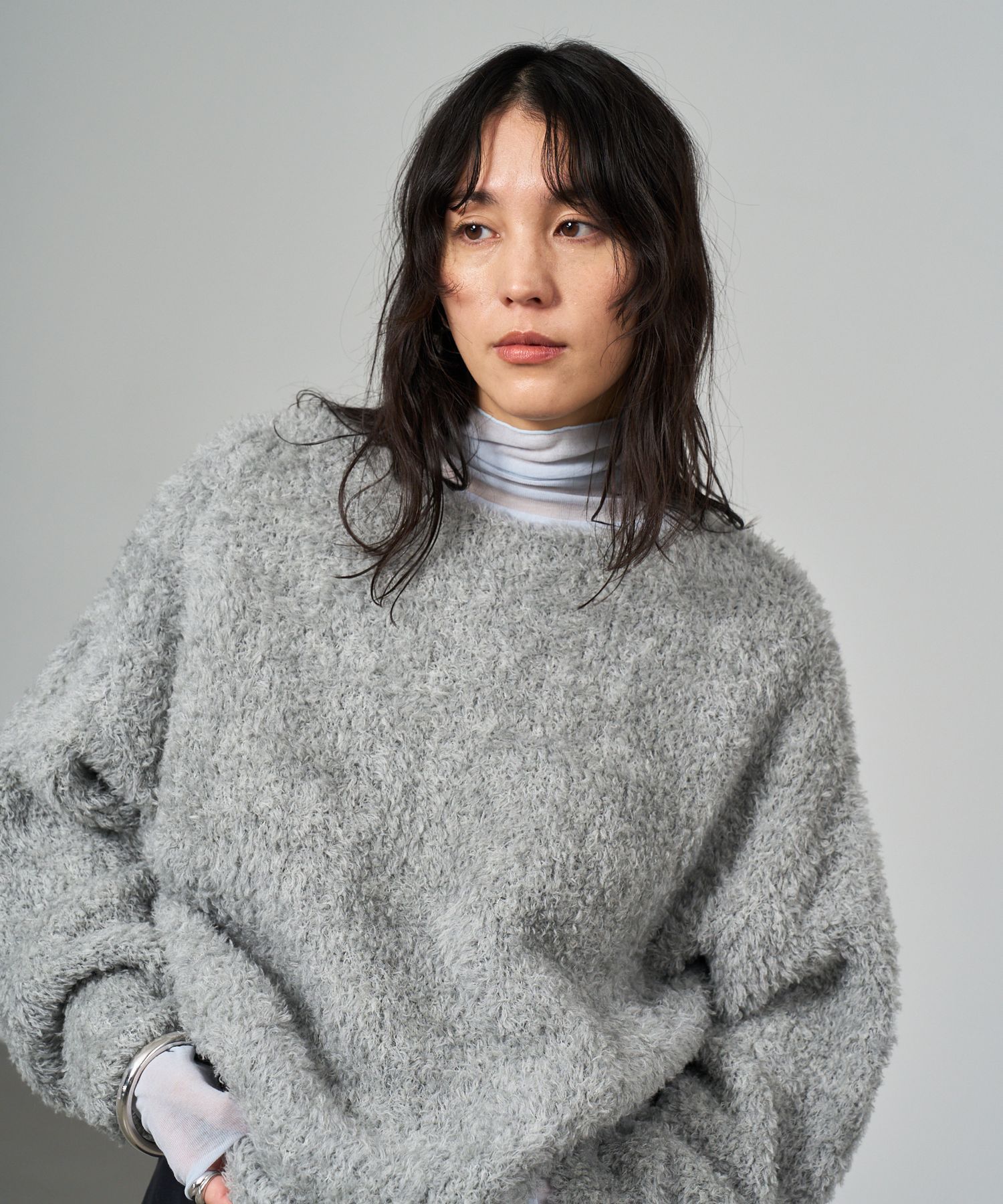 シアー感が美しい。立体的なシルエットの万能プルオーバー-design-ホールガーメントで作ったリブプルオーバーはハギ目がないので、シアーなニットが美しく立体的なシルエットに仕上がります。伸縮性抜群な素材感なので、コンパクトなサイズ感なのに着心地もとても快適です。-how to care-こちらの商品は、手洗いでのお洗濯が可能です。-fabric-16.5マイクロンの防縮ウールにカシミヤをミックスした糸を起毛したタムヤーンです。タムヤーンとは、糸の表面にループ状の装飾を施したカットして毛羽立たせた糸のことです。こちらは更にナイロンの伸縮性を加えた最高の着心地を追究した糸です。【Chaos(カオス)】「カオス」の時代にあっても、自由かつインディペンデントな感性を大切にする大人の女性たちへ。素材やディティールにこだわったオリジナルと国内外で買い付けたユニークかつアーティな感覚のセレクトをミックスした発信をしています。「大人の為の上質な日常着」