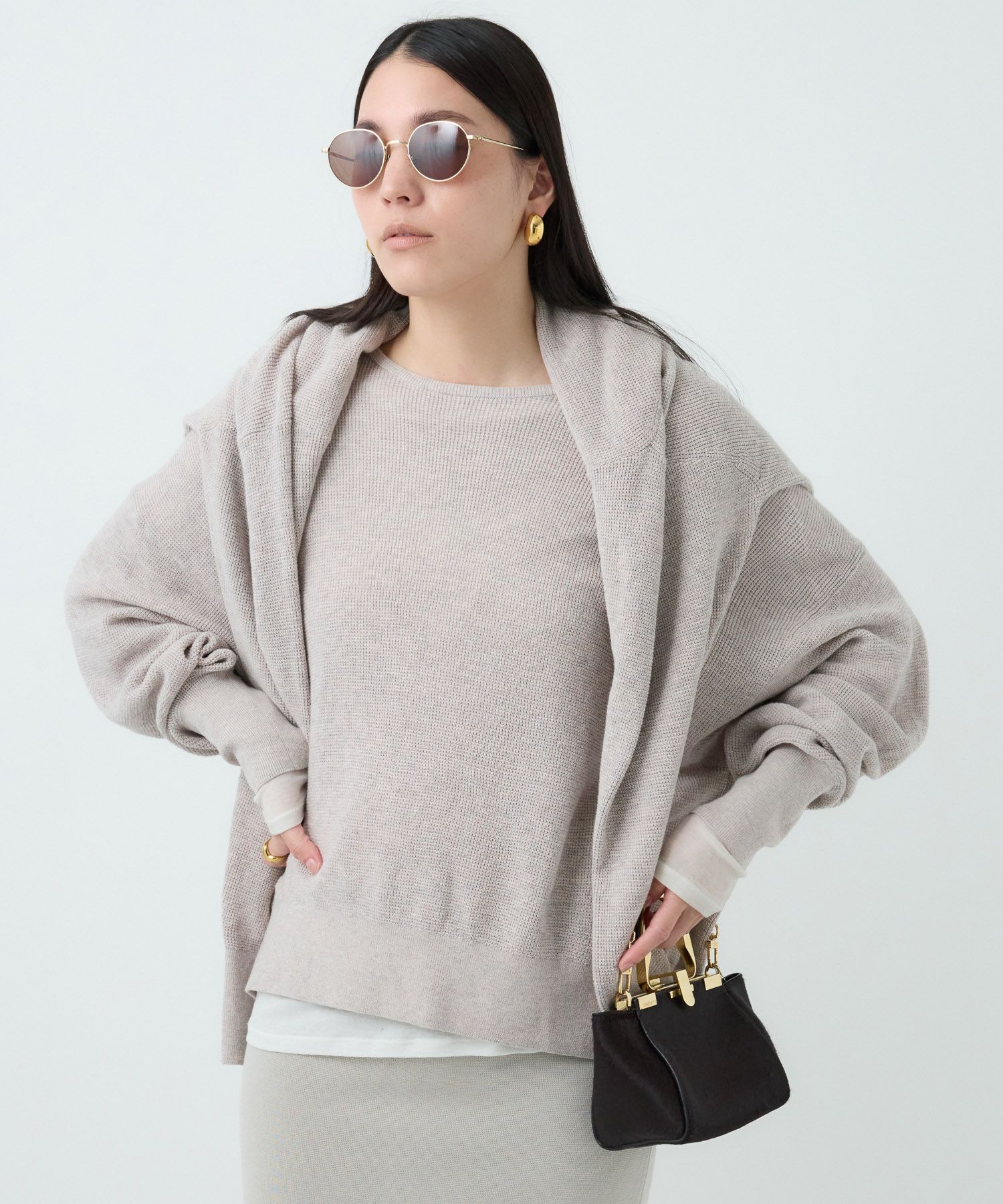 -design-ざっくりした表面感のでる畦編みを針抜きにすることで夏でも涼しく着ていただける程よい透け感ニット。袖が立体的なデザインになっています。フラットになりがちな夏の素材感のアクセントになるニットです。日よけにも活躍しそうです◎-how to care-こちらの商品は、手洗いでのお洗濯が可能です。ーーー-fabric-上質なコットンリネンをポリエステルの芯糸に、通常より多く撚ることでシャリ感のある肌あたりが涼しい素材です。コットンリネンの天然タッチな素材の風合いを保ちながら、ナチュラル過ぎない光沢感もある素材はカジュアルでもきれいめなスタイリングにも相性が良いです。