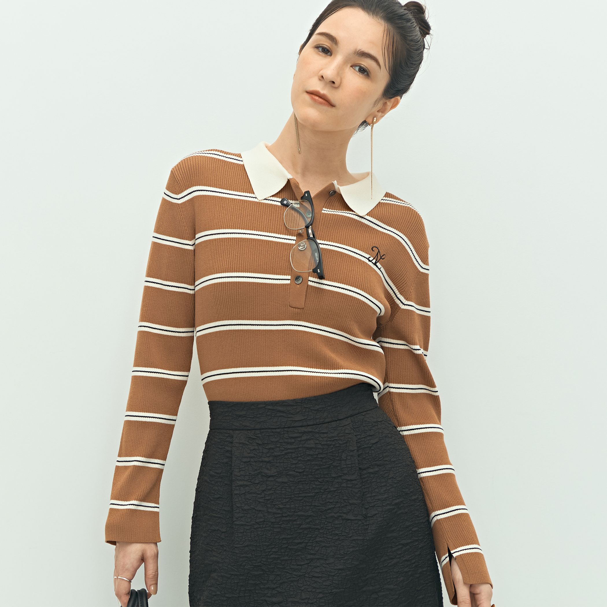 ◇25AW◇NOLLEY'S◆Point・今年注目のプレッピースタイル気分に欠かせないポロニット ・胸元にオリジナル刺繍を施し、カジュアルになり過ぎない印象・さらっとした糸を、リブ編みにしているので、程よい女性らしさを感じるデザイン・チノパンを合わせた王道スタイルや、刺繍スカートと合わせたレディなスタイリングも楽しめるアイテム ●お取扱い上のご注意●末永くご愛用頂くために、アテンションタグを必ずご確認の上、着用又はお取り扱い下さい。気になる商品は、お気に入り登録がオススメです!クーポン情報、入荷情報が、通知されるようになります。※手洗い可※店頭及び屋外での撮影画像は、光の当たり具合で色味が違って見える場合があります。商品の色味は、スタジオ撮影の画像をご参照下さい。※商品画像に関しては出来る限り忠実に表示出来るよう努めておりますが、お客様がご利用のモニターの設定及び特性により、実際の商品と比較し色味に若干の誤差が生じる場合があります。※画像の商品はサンプルとなりますので実際の商品と仕様、加工、サイズが若干異なる場合がございます。
