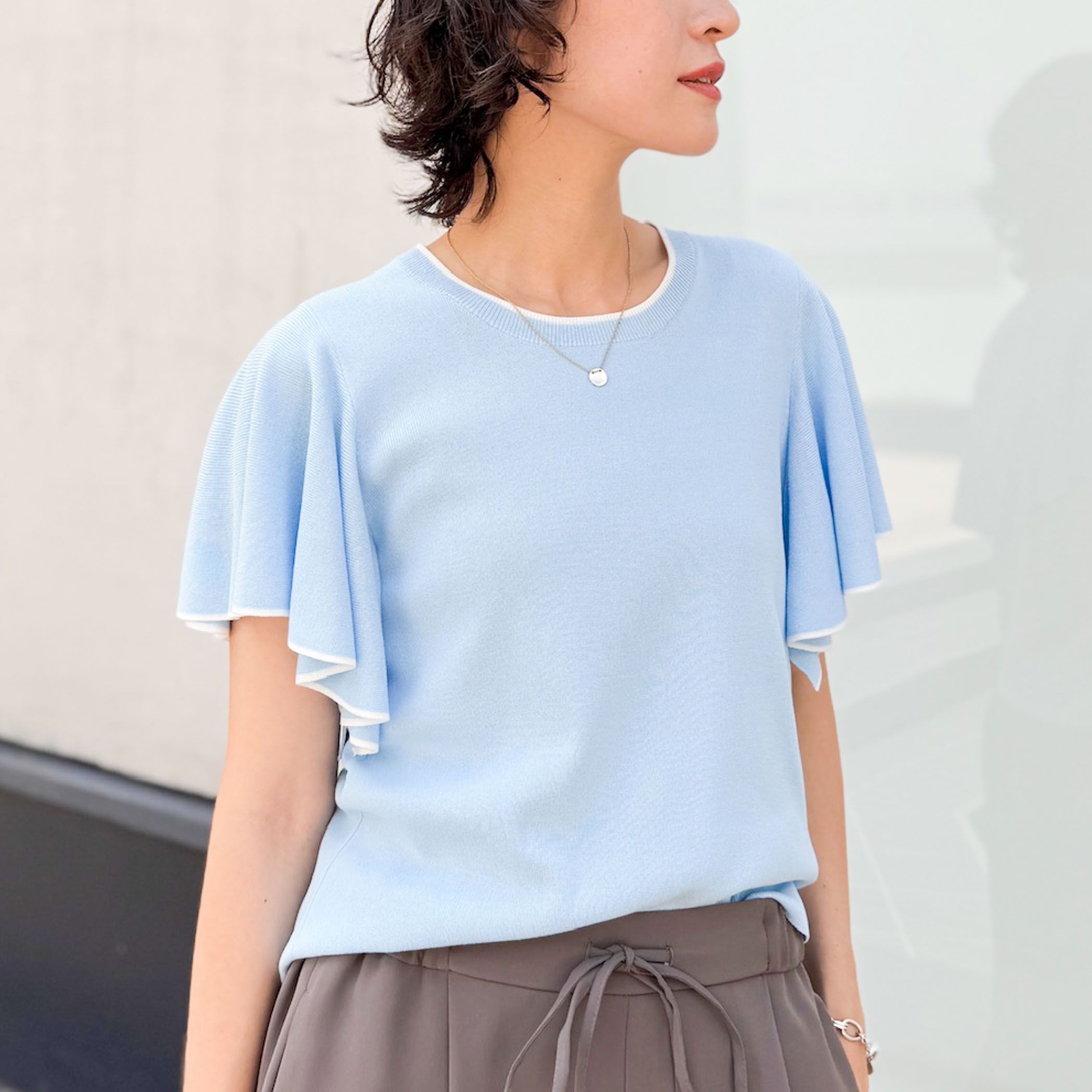 ◇25SS◇NOLLEYS sophi◆Point・麻のようなナチュラルな風合いのある涼し気なサマーニット・立体的なフレアを胸上から2段入れることで透け感を抑え、華やかさもプラス・袖も二の腕が隠れるフレア袖で、風通しも良く、涼しい1枚・胸元は程よく透け感を出し、大人っぽさを演出・ボトムによっては、下の段のフリルのみインにすることも可能・ショート丈で、タイトスカートやワイドパンツとバランス良く着こなせるアイテム●お取扱い上のご注意●末永くご愛用頂くために、アテンションタグを必ずご確認の上、着用又はお取り扱い下さい。気になる商品は、お気に入り登録がオススメです!クーポン情報、入荷情報が、通知されるようになります。※店頭及び屋外での撮影画像は、光の当たり具合で色味が違って見える場合があります。商品の色味は、スタジオ撮影の画像をご参照下さい。※商品画像に関しては出来る限り忠実に表示出来るよう努めておりますが、お客様がご利用のモニターの設定及び特性により、実際の商品と比較し色味に若干の誤差が生じる場合があります。※画像の商品はサンプルとなりますので実際の商品と仕様、加工、サイズが若干異なる場合がございます。