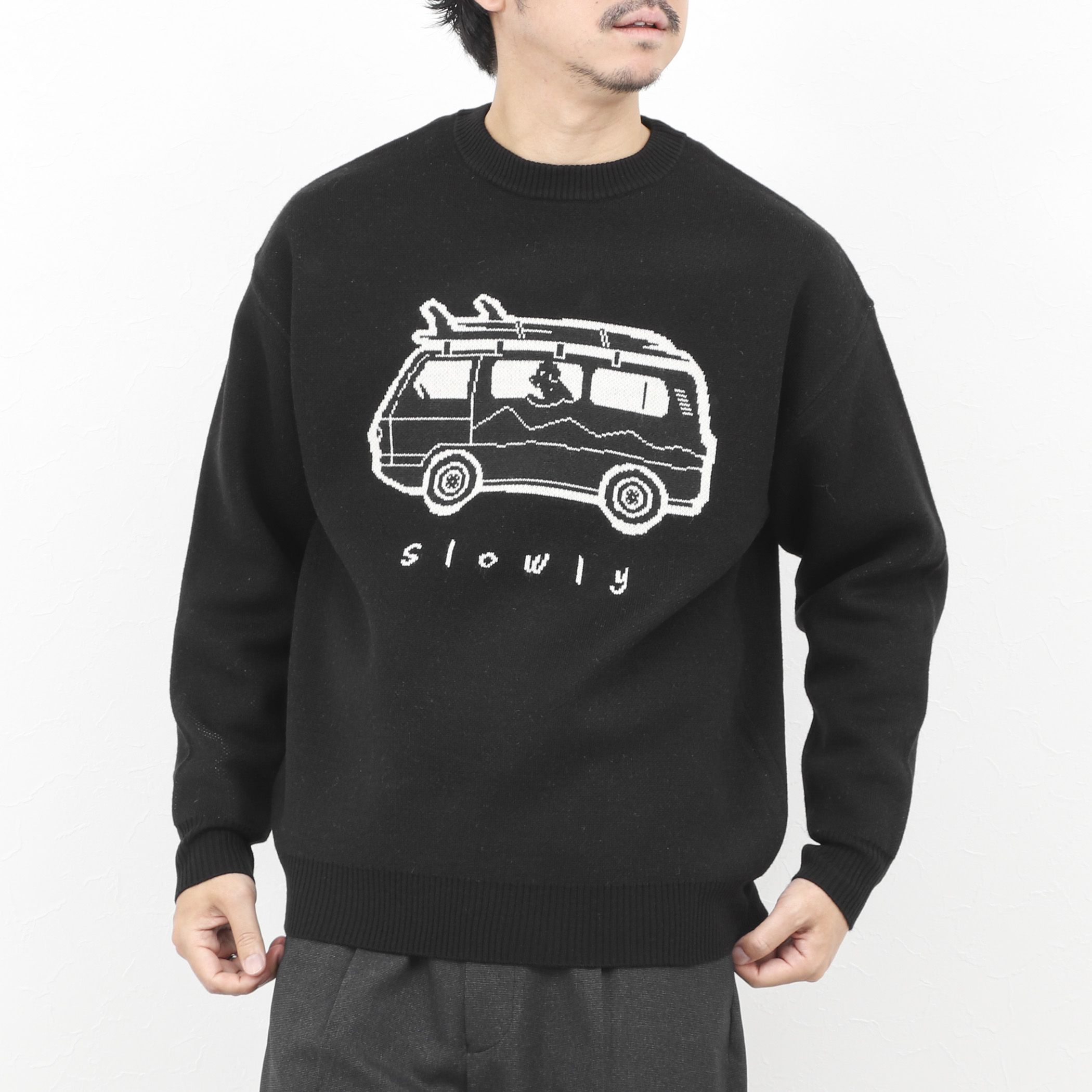 ワゴン車にちょこんと座るワンちゃんシャレの効いたダブルジャカードニット◆素材・ダブルジャカードならではのしっかりとした編地・表情のある平面的でキレイな目面・ハリがあり適度な厚み・スウェットライクなナチュラルな肌触り・比較的ストレスの少ない肌当たり・ウォッシャブル(手洗い可)◆デザイン・フロントに犬と車と「SLOWLY」文字・肩の落ちるややゆったりとしたシルエット・シンプルなクルーネック・ネック/袖口/裾リブ切り替え◆スタイリング・チノパンやデニム、スラックスに合わせて・ジャケットやブルゾンのインナーとして・ギフトにもオススメ※手洗い可ー・ー・ー・ー・ー・ー・ー・ー・ー・ー・ー透け感:なし裏地:なし伸縮性:あり光沢感:なし生地の厚さ:普通ー・ー・ー・ー・ー・ー・ー・ー・ー・ー・ー★気になるアイテムは【お気に入り登録】がオススメです!入荷情報やクーポン、セール情報が通知されるようになります。【お取扱い上のご注意】末永くご愛用頂くために、アテンションタグを必ずご確認の上、着用又はお取り扱い下さい。※店頭及び屋外での撮影画像は、光の当たり具合で色味が違って見える場合があります。商品の色味は、スタジオ撮影の画像をご参照下さい。※商品画像に関しては出来る限り忠実に表示出来るよう努めておりますが、お客様がご利用のモニターの設定及び特性により、実際の商品と比較し色味に若干の誤差が生じる場合があります。※画像の商品はサンプルとなりますので実際の商品と仕様、加工、サイズが若干異なる場合がございます。※製品洗い加工の商品は、多少の歪み、シワなどが見られたり、風合いやサイズ等が1枚1枚異なります。汗や雨等で濡れた時や、摩擦により色落ちし、他の衣料を汚すことがありますので(特に濃色のもの)ご注意ください。