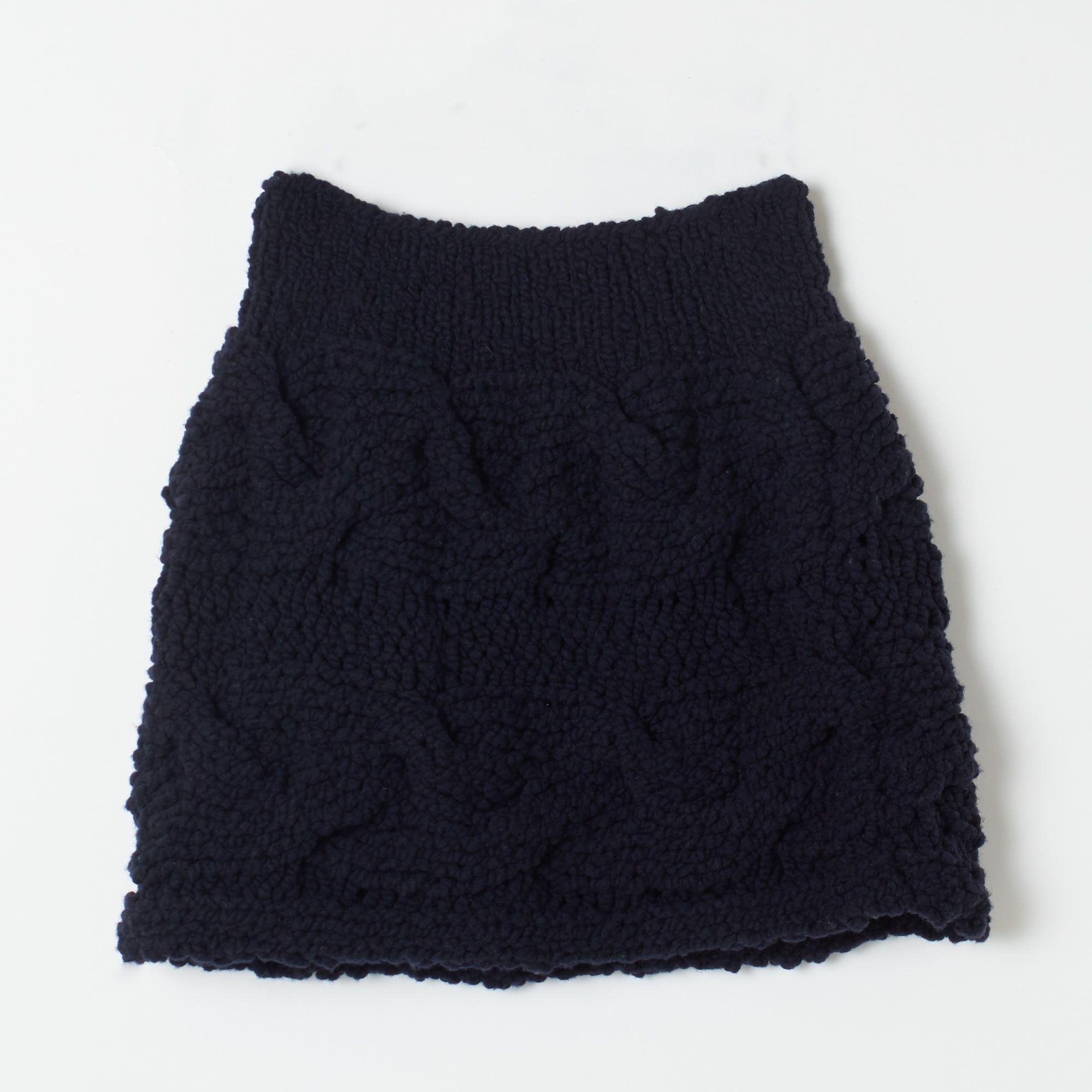 顎まですっぽり覆う高めで広めのスタンドカラーがデザインのポイントになっています。裾の内側でアジャストできるストッパーがついて様々なトラウザーズやスカートとコーディネートがしやすいデザイン。コンパクトながらワイドなラグランスリーブのデザインなのでインにボリュームのあるトップを着ることができます。ウール混のソフトなモコモコが上品な印象のボア素材を使用しており、厚手のバルキーな素材ですが、空気を含んでとても軽いのが特徴です。裏側にはキルティング状のジャージ素材を使用しています。