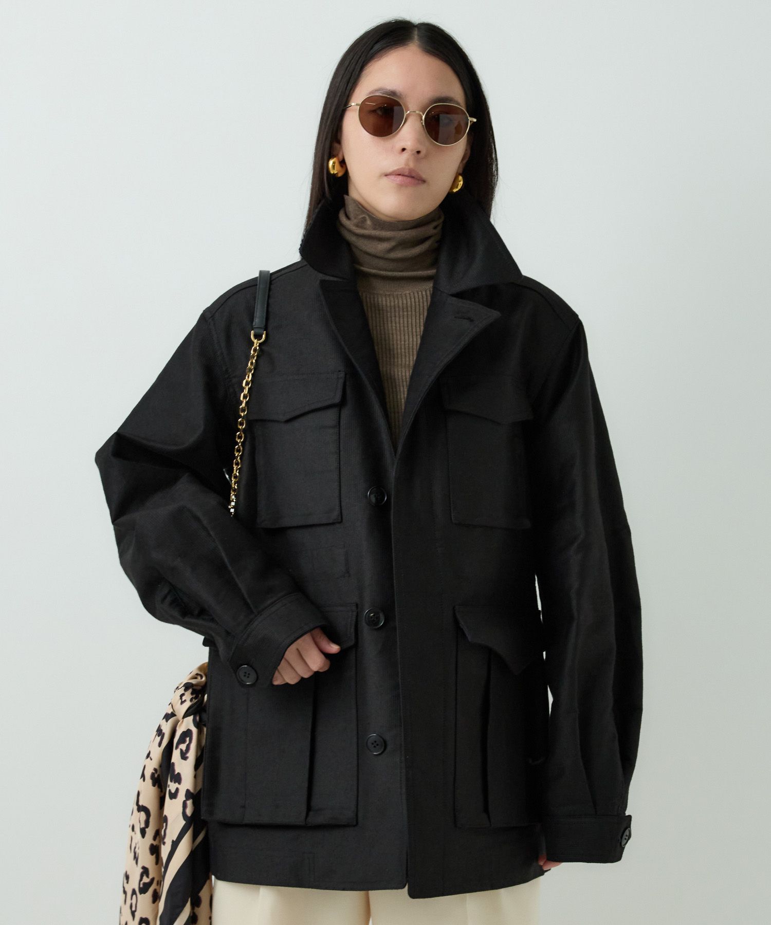 ミリタリー要素のブルゾンをモードに仕上げたアウター-design-ミリタリー要素のブルゾンをモードに仕上げたアウター。このハードな素材を使用してガッツリとしたブルゾンを作りましたが、シルエットや腰の絞り位置などを考えカジュアルになり過ぎないよう作り込みました。その為様々なChaosのアイテムとの相性も非常に良いのがこのブルゾンのポイントです。モードな雰囲気を感じるブルゾンに仕上げました!-how to care-こちらの商品は、洗濯機でのお洗濯が可能です。-fabric-原綿はアメリカ/ブラジル/オーストラリアのものを使用。ピケ組織にて高密度に製織されており、しっかりとした肉厚な生地です。風合いを更に特徴付けるため硬仕上げ加工も入れています。アンカットコールのように見える変則的なピケの組織が武骨な生地表情となっています。綿100%なのに非常に光沢感を感じる事ができるカジュアルになり過ぎない素材感です。【Chaos(カオス)】「カオス」の時代にあっても、自由かつインディペンデントな感性を大切にする大人の女性たちへ。素材やディティールにこだわったオリジナルと国内外で買い付けたユニークかつアーティな感覚のセレクトをミックスした発信をしています。「大人の為の上質な日常着」