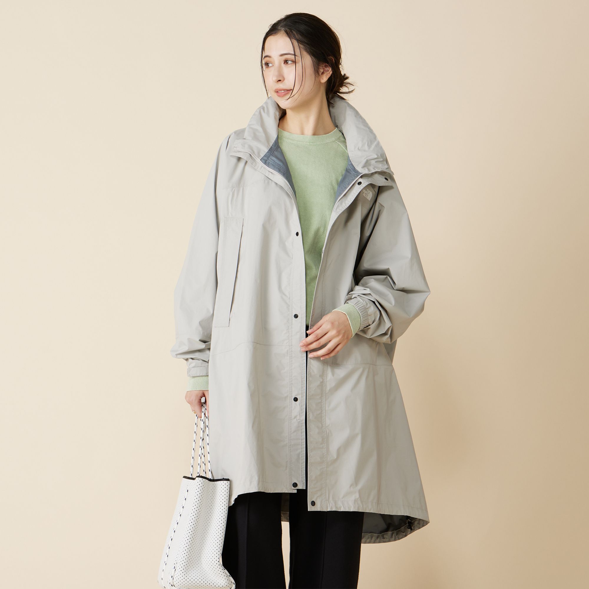 不安定な天気が多い春先におすすめなのが、取り外し可能なフードをセットしたステンカラーのロングコート。素材は製品洗いでヴィンテージライクな風合いと自然なシワ感を持たせた薄軽ナイロン。紫外線遮蔽率95%以上のUVプロテクトに急な雨にも対応する撥水効果、さらに小さく折りたたんで携帯できるパッカブル仕様と、機能面も抜かりなし。着回し力と洒落感が両得できるカーキに近いスプールスグリーンと、墨黒っぽいブラックの全2 色展開です。