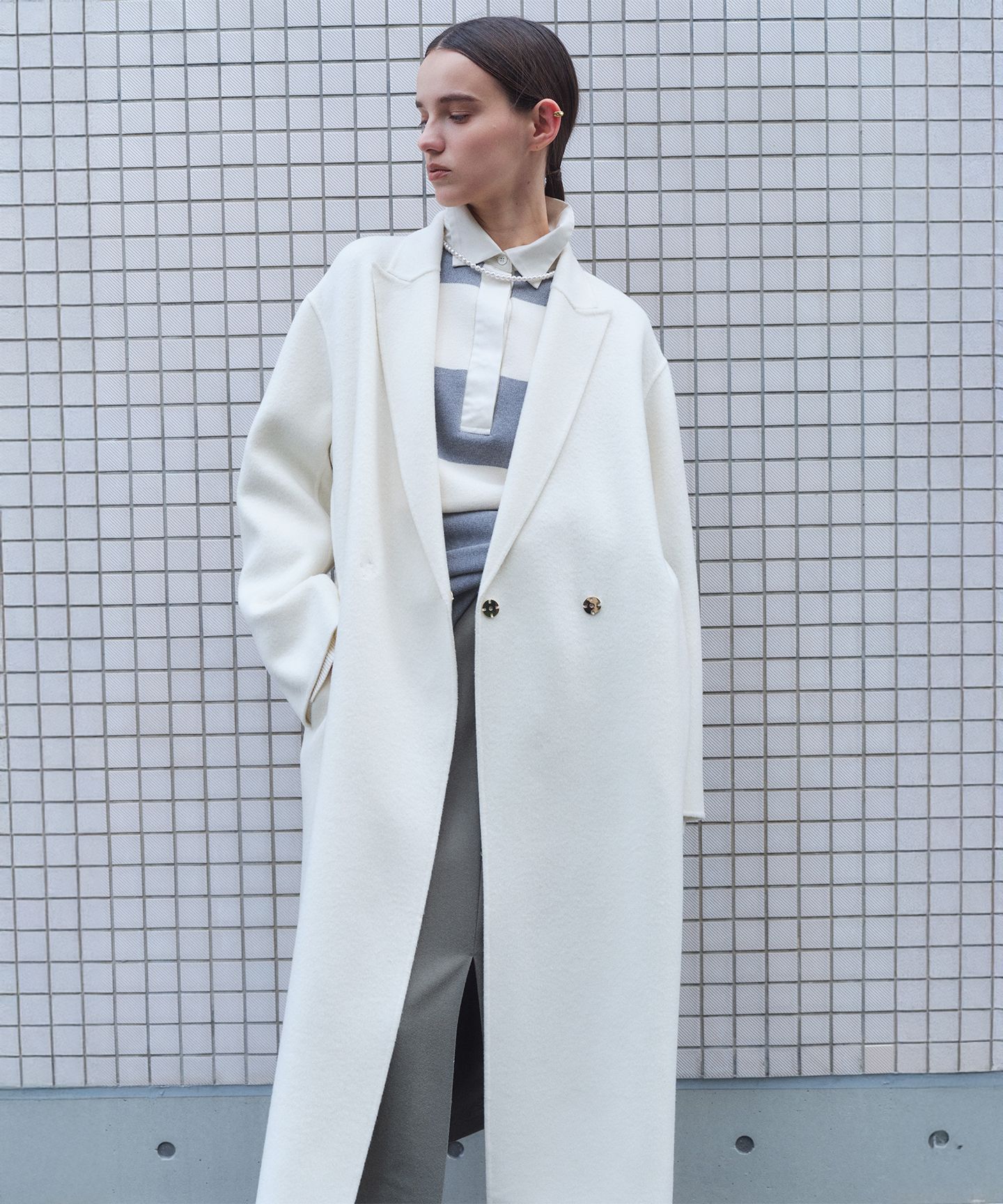 ZION(ザイオン)羽織るだけでスタイルが決まる軽やかなウールコート■デザインカシミヤのような柔らかな着心地のロングチェスターコート。ロング丈ながらも気軽にさらっと羽織れ、大きめの襟が顔周りを華やかに、落ち感のあるゆったりとしたボディで、インナーを選ばず幅広いアイテムに合わせられます。オフ白、キャメル、チャコールグレーの洗練された色合いとフロントのゴールドスナップが、さりげないアクセントとなり、洗練された印象をプラスします。程よい厚みで秋から春先までロングシーズン着回しでき、きれいめなパンツやスカートはもちろん、カジュアルなデニムとも相性が良く、幅広い着こなしに対応するロングアウターです。■素材ウールの中でも色合いが美しいフリース(背中)部分から採れる希少価値の高いラムウールを使用し、雑味のない透明感ある艶感と、カシミアのような風合いが特徴の素材です。程よい厚みで初秋から着回しでき、インナー次第で真冬までロングシーズン着られる素材です。■同素材アイテムZION / ウールスタンドカラーショートコート※照明の関係やパソコンなどの環境により、若干製品と画像のカラーが異なる場合もございます。また商品画像はサンプルを使用しているため、実際にお届けする商品と色味や仕様の変更がある場合がございます。ご了承くださいませ。