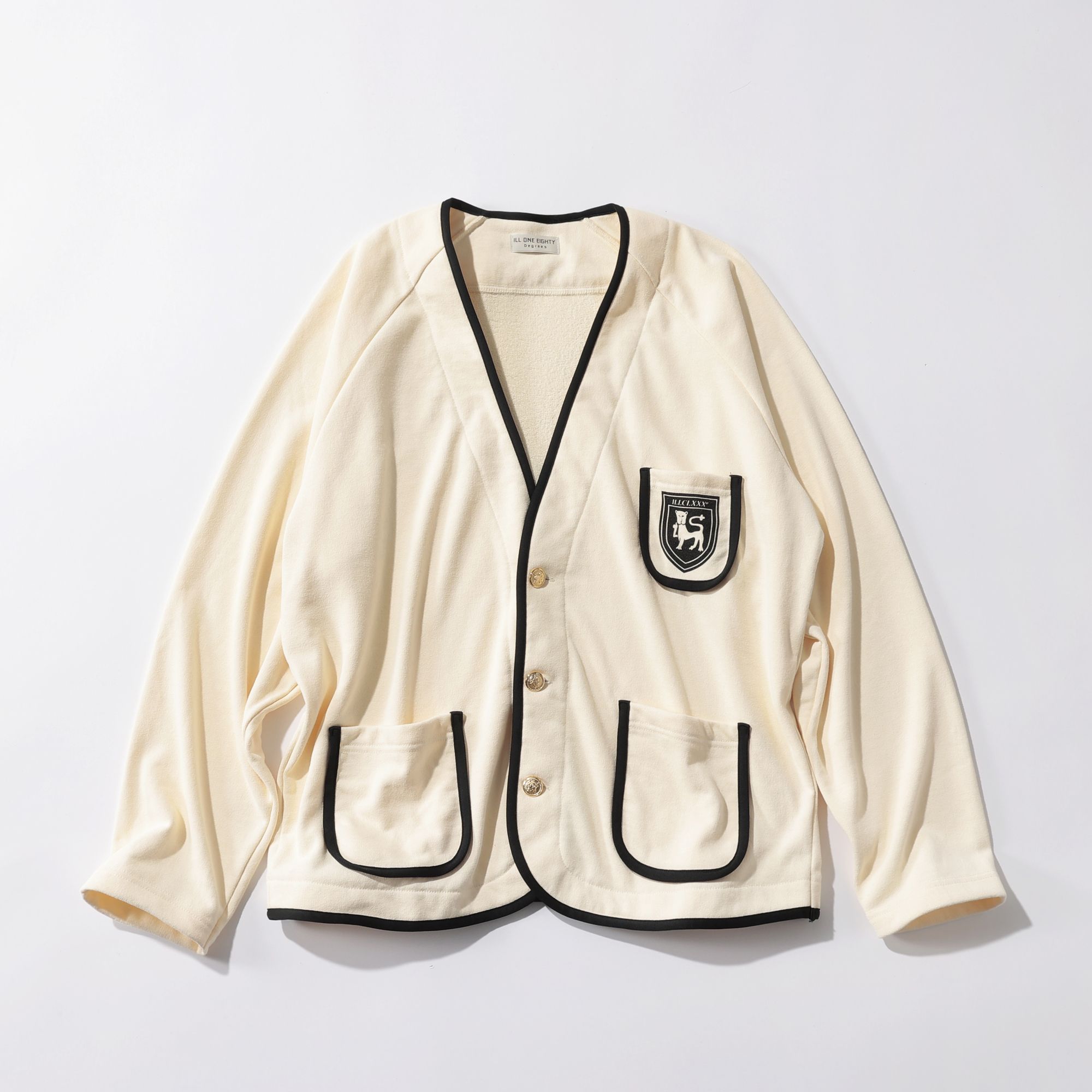 2024春夏シーズンにスタートした注目ブランド、イルワンエイティから届いたのはジャケット風カーディガン。オーバーサイズでリラックス感のある着心地ながら、ポケットのエンブレムや金ボタンなどブレザーのようなディティールで、何に合わせても品よくまとまる優秀アイテム。ワイドパンツを合わせて全体的にルーズなシルエットを作るのが今っぽく見えるポイント。