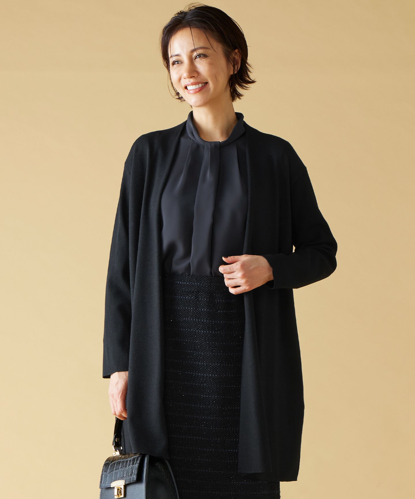 着心地の良いニットジャケット■デザインカーディガン感覚で羽織れるニットジャケットです。ニットならではのしなやかで心地良い着心地ながら、袖口やポケットに施したオリジナルのメタル釦やディテールで、よりジャケットらしいデザインに仕上げました。同素材のワンピース(OPWMSW0452)とセットアップでの着用が可能です。■素材ストレッチ糸を芯にソフト感のあるヴィスコースとウールの混紡糸を巻く特別な撚糸を施し、ストレッチ素材のスポンディッシュ感とウールの暖かさを併せ持った素材です。■同素材アイテムワンピース(OPWMSW0452)※画像はサンプルを使用している為、実際にお届けする商品と仕様、加工、サイズが若干異なる場合がございます。予めご了承ください。※撮影環境の都合上、実際の商品と色味が異なって見える場合がございます。