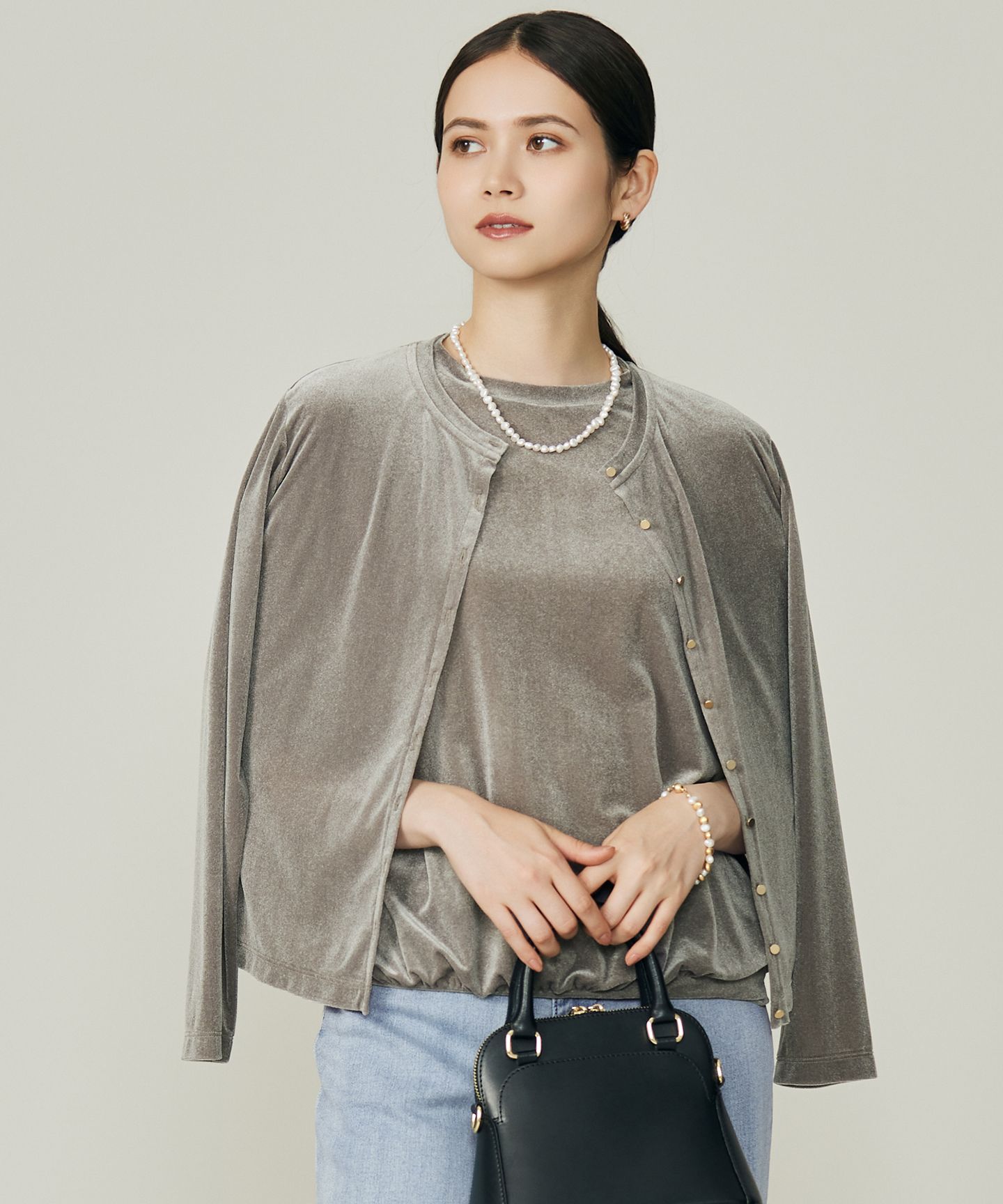 程よい透け感がポイントのベロア素材カーディガン■デザインややコンパクトなシルエットのベロア素材のカーディガンです。クラシカルなカーディガンは素材に表情があり、シンプルながらスタイリングのアクセントになるアイテムです。■素材透け感のあるベロア素材です。絶妙な透け感と光沢感でニュアンシーな雰囲気を楽しめます。レイヤードでのアクセント使いから1枚着トップスなど、様々なアイテムで活躍するトレンド素材です。■同素材アイテムカットソー(KKWMGW0333)※画像はサンプルを使用している為、実際にお届けする商品と仕様、加工、サイズが若干異なる場合がございます。予めご了承ください。※撮影環境の都合上、実際の商品と色味が異なって見える場合がございます。