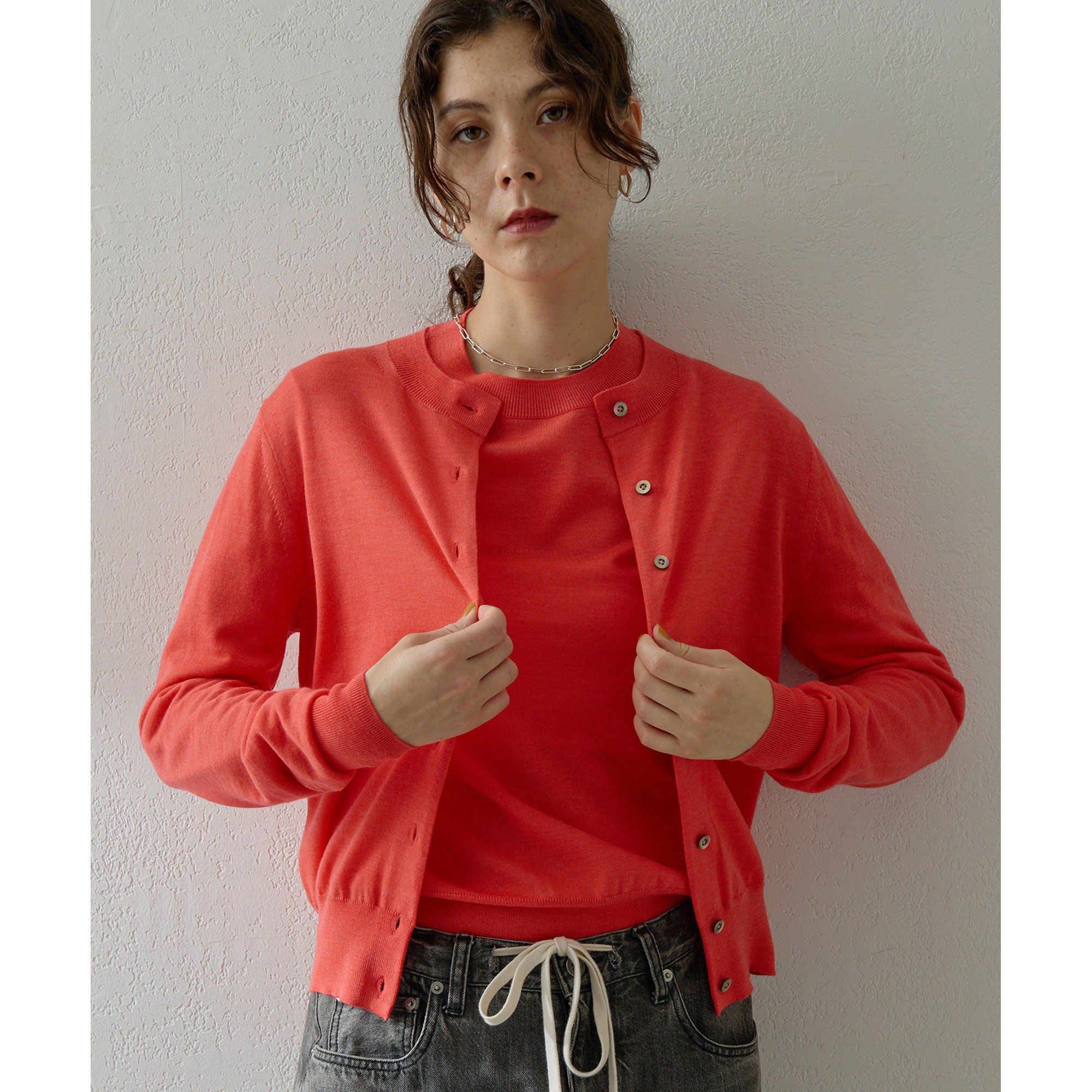【2023AW】シーンレスに着回しできる、ベーシックなニットカーディガン■ベーシックなデザインが嬉しいニットカーディガン。■カシミヤのような風合いの上質なウールを使用し、滑らかで柔らかな着心地が魅力。■一枚でプルオーバーとしてもきれいに着用できるよう前下がりを調整。■すっきりとしたコンパクトなシルエットでボトムを選ばす、幅広いシーンで活躍出来るアイテム。■同素材のストールとレイヤードしたり、プルオーバーに合わせてアンサンブルとして楽しむのもおすすめ。【COLOR】オフホワイト:明るいアクセントを添えてくれる優しいオフホワイト。スカイブルー:パッと目を惹くきれいな発色が魅力のスカイブルー。レッド:スタイリングが一気に華やぐ鮮やかなレッド。ベージュ:大人っぽさを演出できる品のあるモカベージュ。グレー:トレンドライクなムードに仕上げてくれるシックなグレー。ブラック:オンオフ問わずに使いやすいスタンダードなブラック。【MATERIAL】マーセライズ加工を施した17.5マイクロンの極細メリノウールに、独自の紡績技術を採用したカシミヤの様な滑らかで柔らかく仕上げられた糸。【STAFF COMMENT】■身長156cm|普段サイズ M|着用サイズ FREE深過ぎないVネックカーディガン。ボタンを全てとめてプルオーバー風な着こなしもおすすめです。滑らかな肌のあたりで生地感が最高。薄手のニットは秋の始まりに活躍し、冬は素材感のあるボトムとの合わせも素敵ですよ。■身長165cm|普段サイズ M|着用サイズ FREE羽織としてはもちろん、一枚でプルオーバーのように着用してもおしゃれなカーディガンです。滑らかな肌触りです肌にも心地よく着用出来ます。サイズ感はコンパクト。----------------------------------------------------洗濯方法:手洗い可透け感:ややあり(オフホワイト、ベージュ)裏地:なし伸縮性:あり光沢感:なし----------------------------------------------------※画像の商品はサンプルです。実際の商品と仕様、色味が若干異なる場合があります。※入荷状況によりお届け予定が前後する場合があります。予めご了承ください。