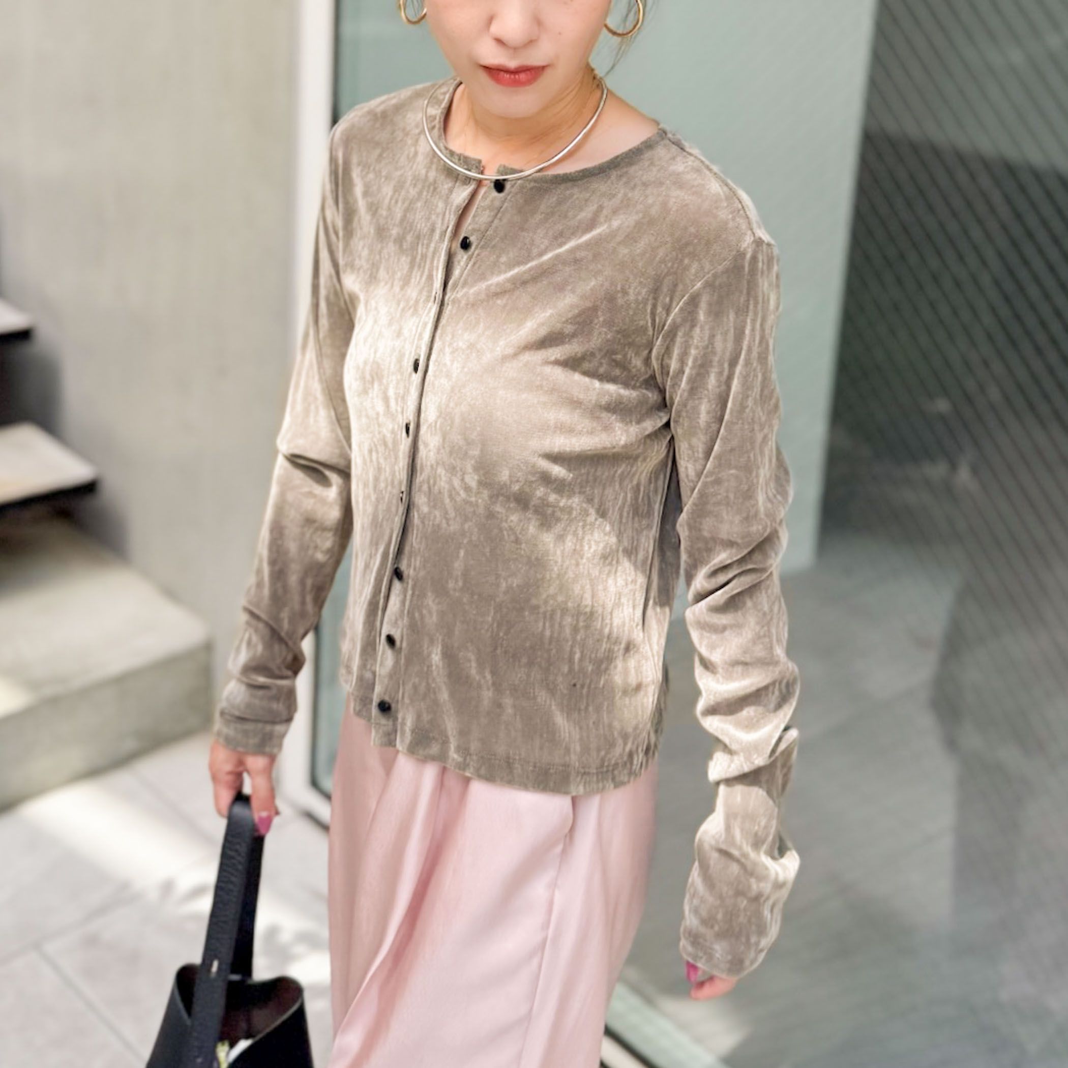 ◇25AW◇NOLLEYS◆Point・ベロアのような表面感が特徴のクルーネックカーディガン・縦横に伸縮するチュール素材で、快適な着心地・フロッキーの起毛感がありながらチュールの通気性により、暑い時期でも初秋の雰囲気を演出してくれる、端境期に使いやすいアイテム・プルオーバーとして前後2WAY着用可能・デニム合わせのカジュアルスタイリングから、きれいめスカート合わせまで、様々な着こなしを楽しめる1枚※手洗い可能ですが、フロッキープリントなのため、他の物と一緒に洗うのは避けてください。●お取扱い上のご注意●末永くご愛用頂くために、アテンションタグを必ずご確認の上、着用又はお取り扱い下さい。気になる商品は、お気に入り登録がオススメです!クーポン情報、入荷情報が、通知されるようになります。※手洗い可※店頭及び屋外での撮影画像は、光の当たり具合で色味が違って見える場合があります。商品の色味は、スタジオ撮影の画像をご参照下さい。※商品画像に関しては出来る限り忠実に表示出来るよう努めておりますが、お客様がご利用のモニターの設定及び特性により、実際の商品と比較し色味に若干の誤差が生じる場合があります。※画像の商品はサンプルとなりますので実際の商品と仕様、加工、サイズが若干異なる場合がございます。