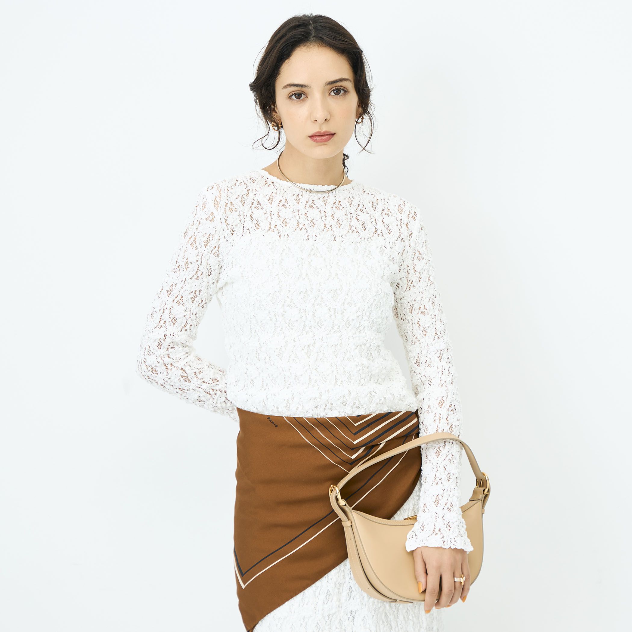 ◇26SS◇NOLLEY'S sophi◆Point・コットン素材で柔らかく、ストレッチ性に優れたニットライクなレース素材を使用した3型シリーズ・繊細な透け感があり、1枚着としても、インナーとしても旬な着こなしが楽しめる1着・前後2WAY仕様・程よくフィットするタイトシルエットですが、伸縮性があり快適な着心地・春らしい季節感を楽しめる1着・同素材ペプラムプルオーバー(6-0030-1-01-003)、タイトスカート(6-0030-1-06-004)あり・手洗い可※生地の特性上、寸法に誤差が生じる場合がございますのでご了承ください。●お取扱い上のご注意●末永くご愛用頂くために、アテンションタグを必ずご確認の上、着用又はお取り扱い下さい。気になる商品は、お気に入り登録がオススメです!クーポン情報、入荷情報が、通知されるようになります。※店頭及び屋外での撮影画像は、光の当たり具合で色味が違って見える場合があります。商品の色味は、スタジオ撮影の画像をご参照下さい。※商品画像に関しては出来る限り忠実に表示出来るよう努めておりますが、お客様がご利用のモニターの設定及び特性により、実際の商品と比較し色味に若干の誤差が生じる場合があります。※画像の商品はサンプルとなりますので実際の商品と仕様、加工、サイズが若干異なる場合がございます。