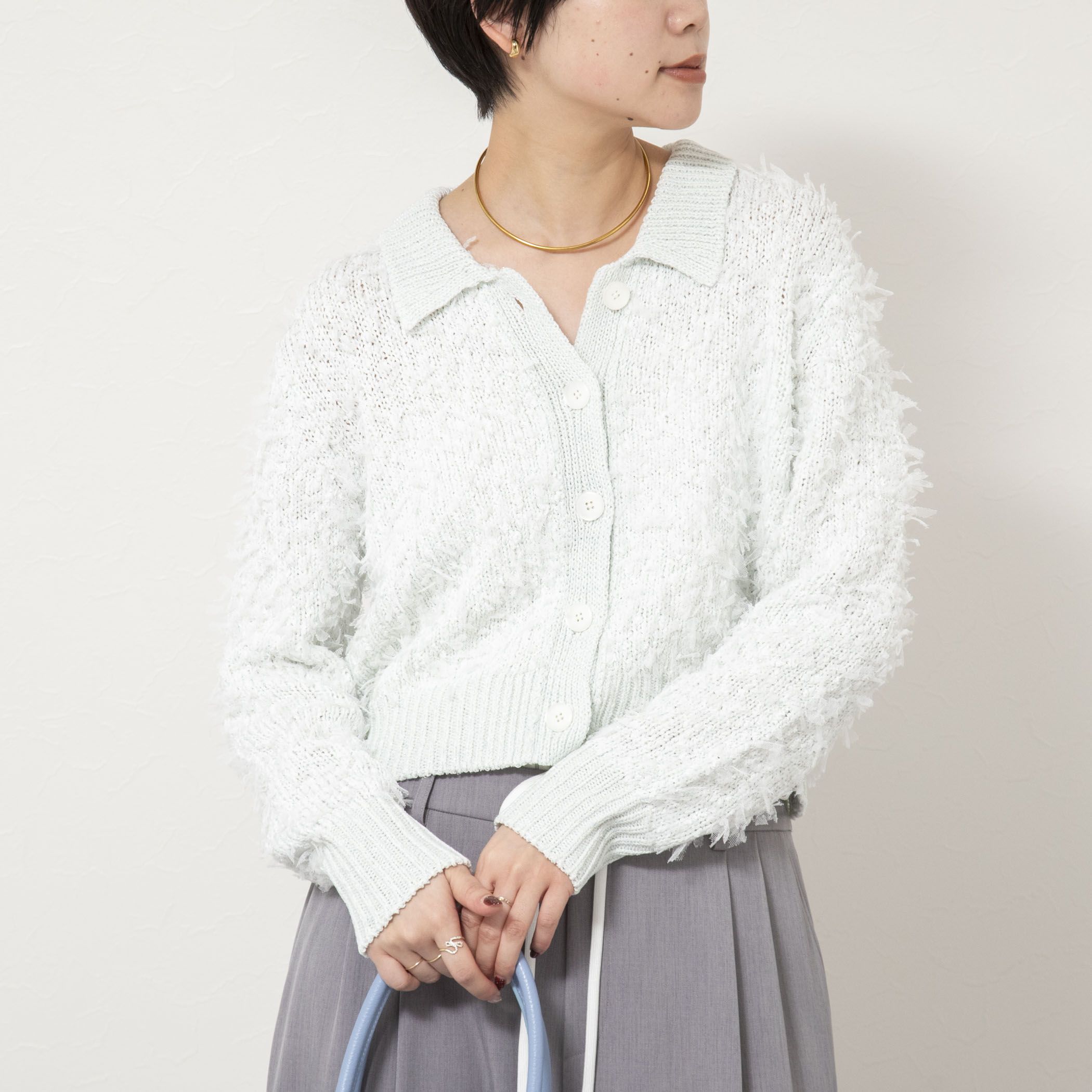 ◇26SS◇NOLLEY'S sophi◆Point・チュールヤーンとコイルヤーンとラメ糸で表情のあるポロ襟ニットジャケット・多色使いではなく、同色での引き揃えなので、無地感覚の印象・着丈短めのコンパクト丈で、ワイドパンツやボリュームのあるスカートと好相性・程よく肉感もあるので、寒い時期から着用可能●お取扱い上のご注意●末永くご愛用頂くために、アテンションタグを必ずご確認の上、着用又はお取り扱い下さい。気になる商品は、お気に入り登録がオススメです!クーポン情報、入荷情報が、通知されるようになります。※手洗い可※店頭及び屋外での撮影画像は、光の当たり具合で色味が違って見える場合があります。商品の色味は、スタジオ撮影の画像をご参照下さい。※商品画像に関しては出来る限り忠実に表示出来るよう努めておりますが、お客様がご利用のモニターの設定及び特性により、実際の商品と比較し色味に若干の誤差が生じる場合があります。※画像の商品はサンプルとなりますので実際の商品と仕様、加工、サイズが若干異なる場合がございます。