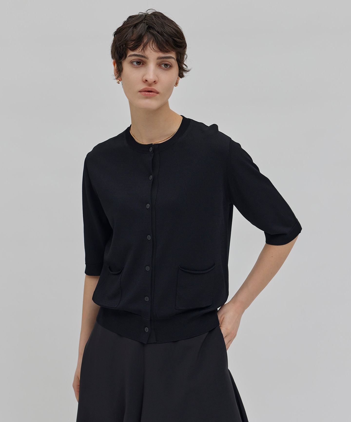 VALOIS(ヴァロア)幅広く着回せるミドル丈カーディガン■デザイン昨年よりご好評いただいている人気カーディガンに新しいカラーが登場。デザインは変わらず使いやすいシルエットで、この時期着合わせしやすい半袖カーディガン。長めの袖丈にすることでかわいらしさを抑え大人な印象に。華奢に施したグログランテープと小ぶりな釦を配色にしアクセントを効かせました。お仕事やオフィスのキレイ目トップスとして、ワンピースやノースリーブのカーディガンとして、着回しの効く1枚です。■素材手触りがとても滑らかで、シワになりにくい素材。吸水性と通気性も優れており着心地が良く、また形崩れしづらいのも特徴です。ご自宅で手洗いが可能な素材となっています。■同素材アイテムVALOIS / ドッキングニット※照明の関係やパソコンなどの環境により、若干製品と画像のカラーが異なる場合もございます。また商品画像はサンプルを使用しているため、実際にお届けする商品と色味や仕様の変更がある場合がございます。ご了承くださいませ。