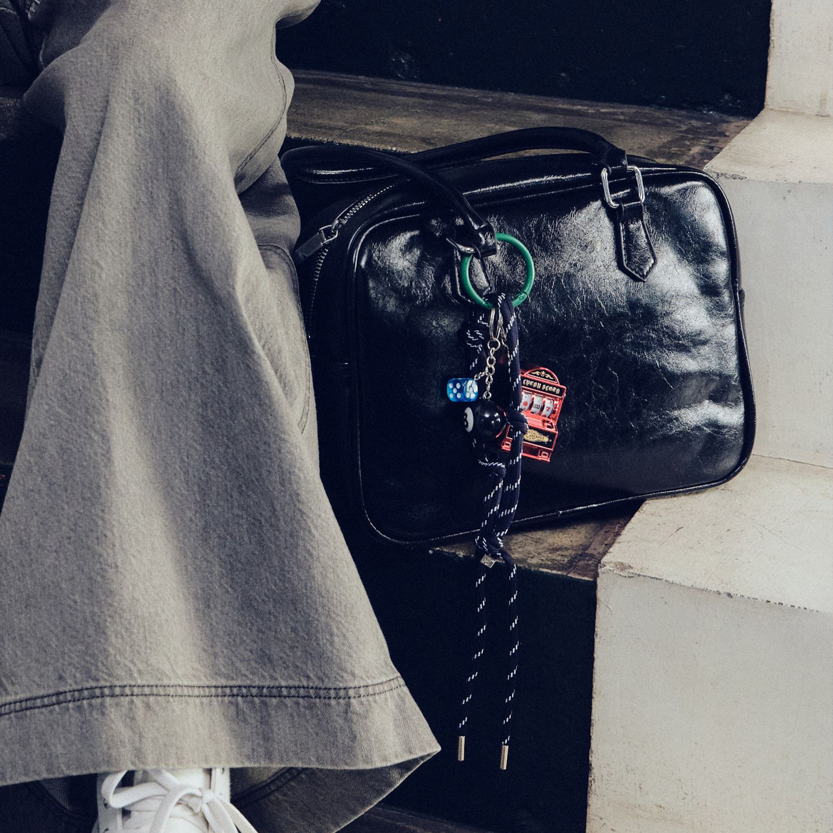 ハピプラストアで今季から取り扱いがスタートしたミラノ発のレザー小物ブランド、クリスチャンヴィラ。初登場となる今回は、人気定番のスクエア型ボストンをロゴなしバージョンで別注。黒のエナメルレザーと、ゴールドカラーファスナーの上品な艶めきが際立つ佇まいは、コーデの格上げ&引き締め役にピッタリ。カジュアルなデニムスタイルにも、瞬時に「大人らしさ」備わります。