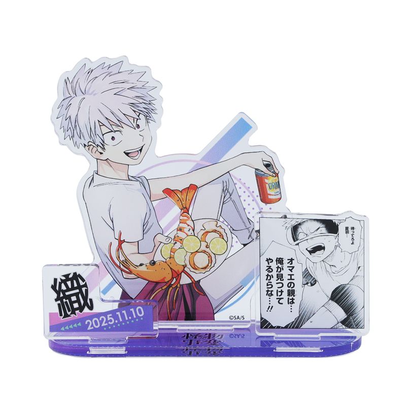 『怪物事変』織のカラーイラスト+作中の名場面のコマイラスト+名前&誕生日パーツが立体的に組みあがった、アクリルジオラマフィギュア!存在感抜群! いろんなキャラの名場面ジオラマを集めて飾って、バースデイをお祝いしよう♪※商品画像は製作サンプルを撮影しております。重要な仕様変更等がある場合は、ご注文いただいたお客様に個別にご連絡いたします。※商品サイズは製作サンプルを採寸しております。サイズ計測の際、製品の特性および測定方法により誤差が生じる場合がございます。※こちらは2025年発売のバースデイ商品です。※1回のお買い物で、10個までご購入いただけます。