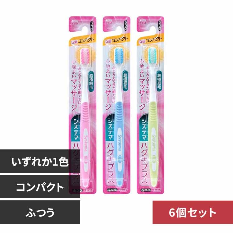 システマハグキプラスハブラシは、歯ぐきのおとろえが気になりだした方むけの歯周病ケアができるハブラシです。 段差植毛なので、歯周ポケットにも歯ぐきにもやさしくフィット、高密度の超極細毛で歯ぐきを心地よくマッサージできることが特長です。 超極細毛だから、歯周ポケットの奥の汚れをかき出せます。 薄型ヘッドで、お口の奥まで届きやすくなりました。 ヘッドの大きさはコンパクト。 毛のかたさはふつうです。